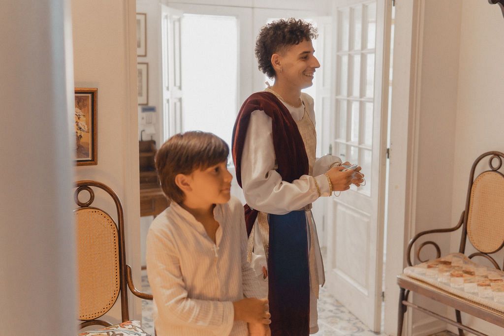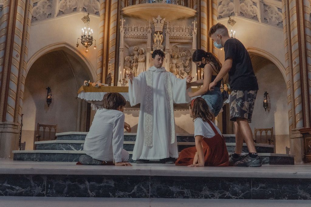 In the video, inside a small church, a priest prepares to perform the first communion of two children from the village. Meanwhile, the boy prepares to try to get the attention of the girl attending. He is assisted by a character dressed as a Roman, a product of his imagination. But in the middle of the ceremony, they decide to escape, fleeing from the adults. In the end, it will be revealed if this is really what the boy was looking for and what role the priest plays in this story.