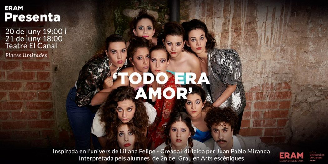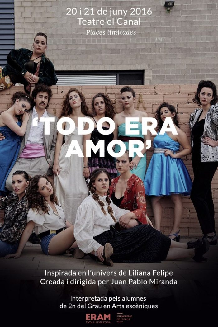 Los alumnos de segundo del GAE representan su segunda obra. Todo era amor, es el título del espectáculo creado y dirigido por Juan Pablo Miranda, generado a partir del trabajo práctico en la asignatura de Ámbito de creación III. Escena musical, del 2do curso del Grado en Artes Escénicas. La obra gira alrededor del universo musical y político de la artista argentina establecida en México, Liliana Felipe, y las aportaciones de los propios intérpretes y alumnos de la asignatura.